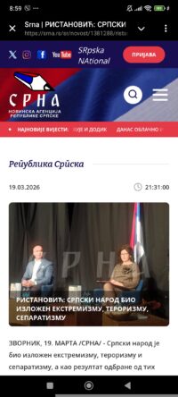 Ристановић: Српски народ био изложен екстремизму, тероризму и сепаратизму ЗВОРНИК, 19. МАРТА /СРНА/ - ...->