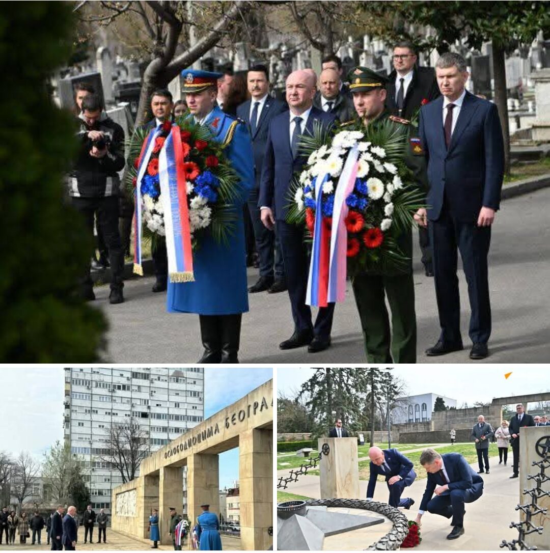 Министар без портфеља задужен за област међународне економске сарадње и област друштвеног положаја цркве у земљи и иностранству Ненад Поповић и министар економског развоја Руске Федерације Максим Решетњиков, који борави у званичној посети Београду, положили су данас на Новом гробљу, на Руски некропољ, венац у част руским војницима страдалим у Првом светском рату.